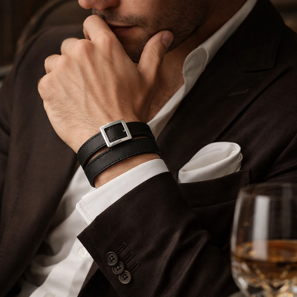 Custom lab-grown diamond payment ring and Signature Leather Double Strap.